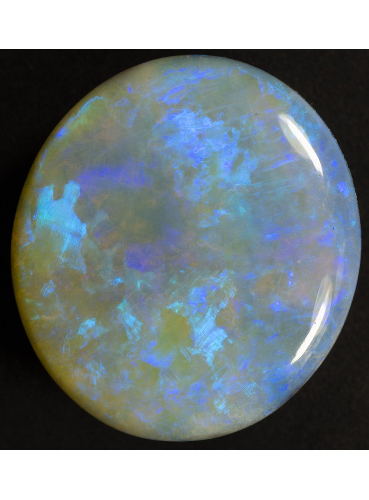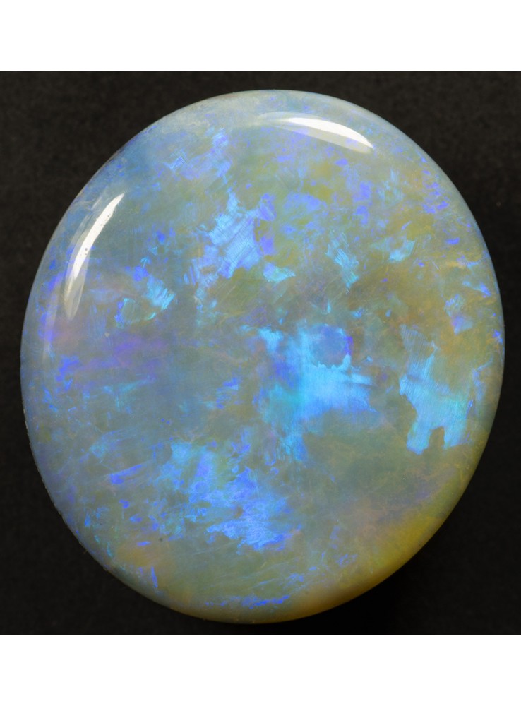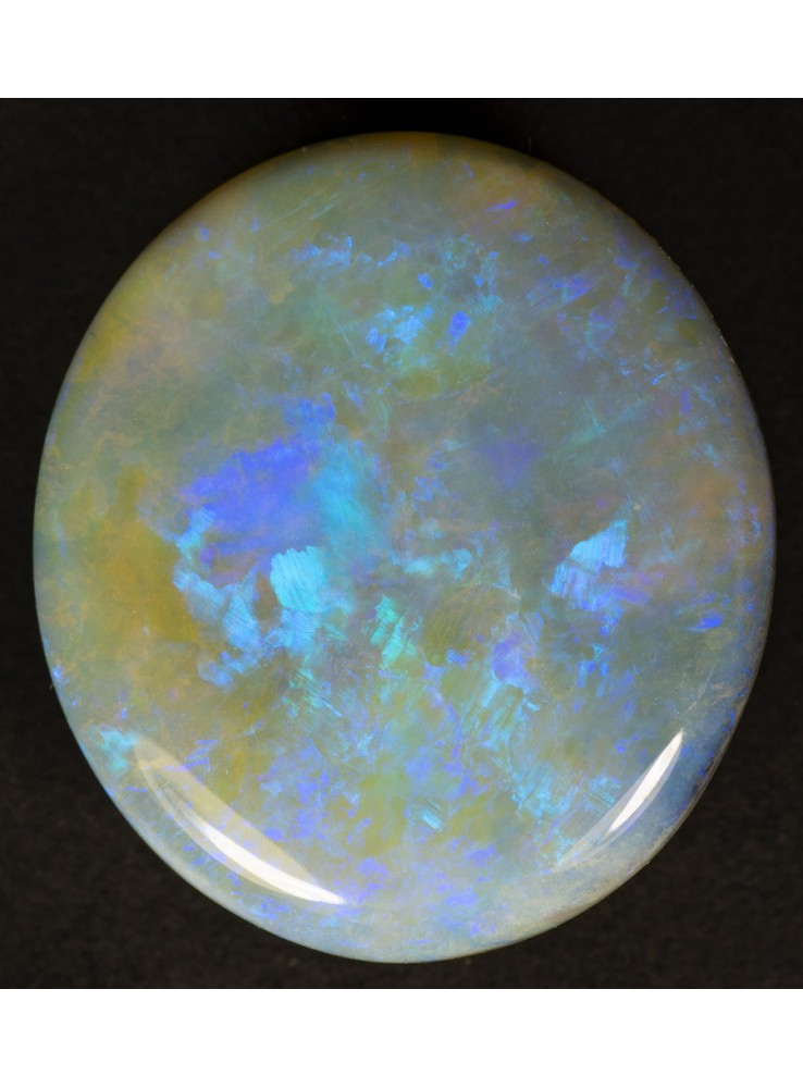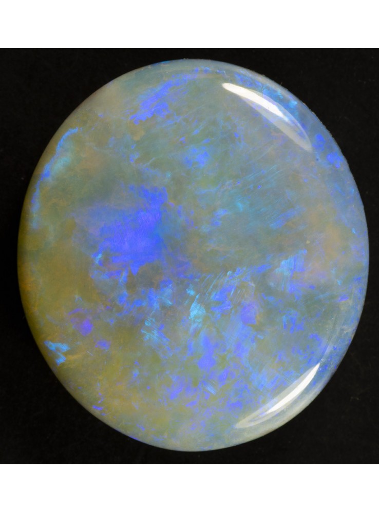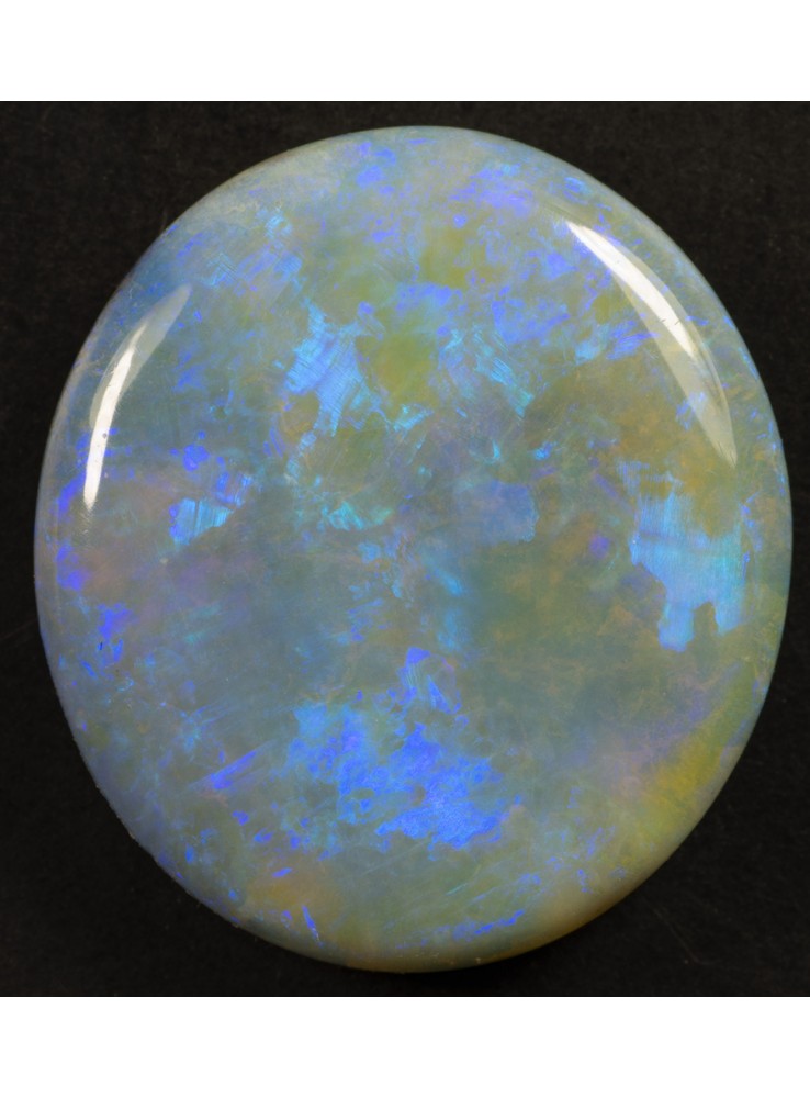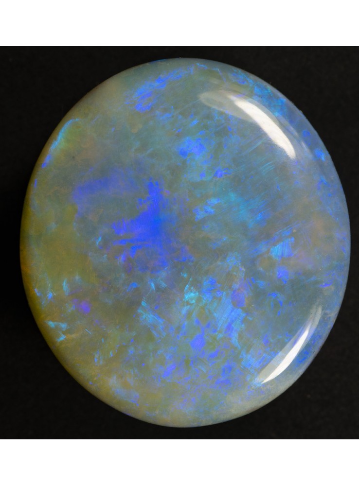 Přírodní drahý opál z Austrálie (Lightning Ridge). Nádherný opál s několika odstíny krásné modré barvy, které se střídají nebo navzájem prolínají. 16,4x14,7x4mm, 6,71ct