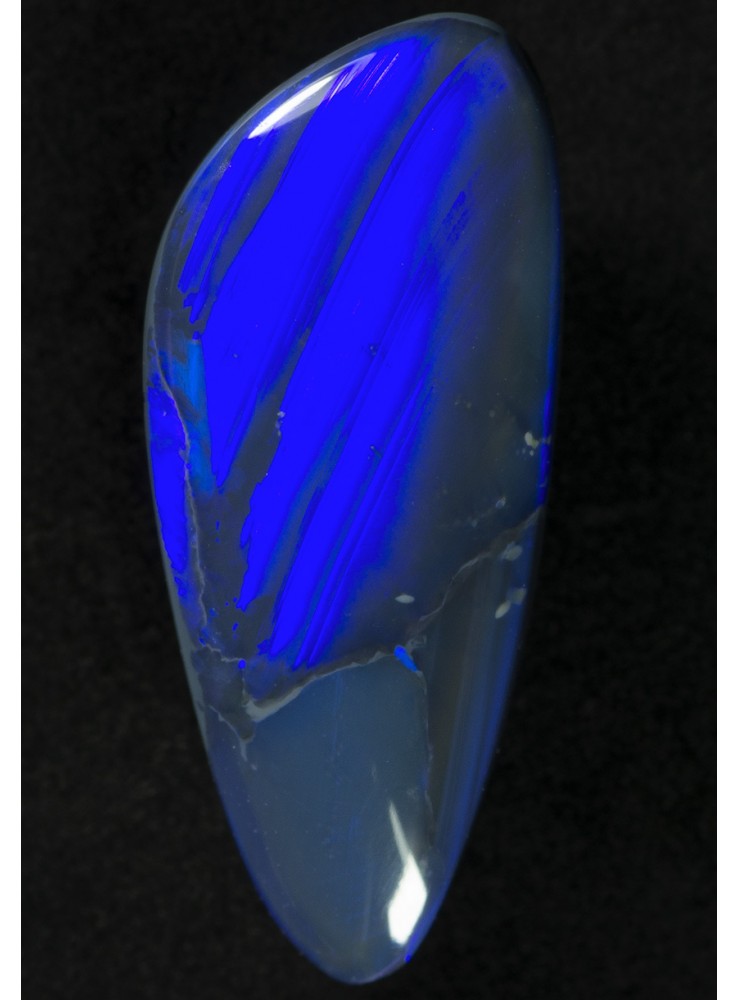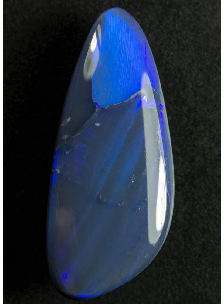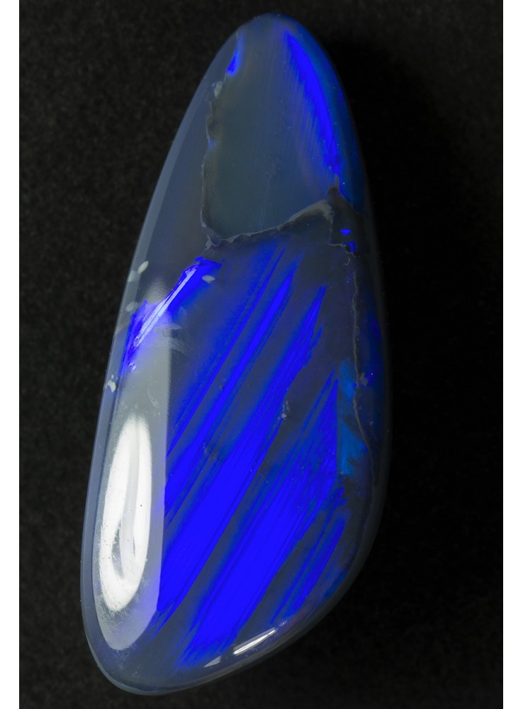 Přírodní drahý opál z Austrálie (Lightning Ridge). Vzácný černý opál s nádhernou modrou barvou v dokonalém vzoru. Vzácný odstín modrých barev, který se krásně zobrazuje v unikátním vzoru. Barvy jsou po celém opálu. 15,9x6,8x3,9mm, 2,53ct