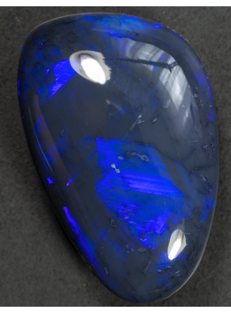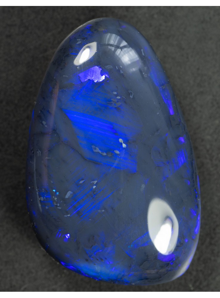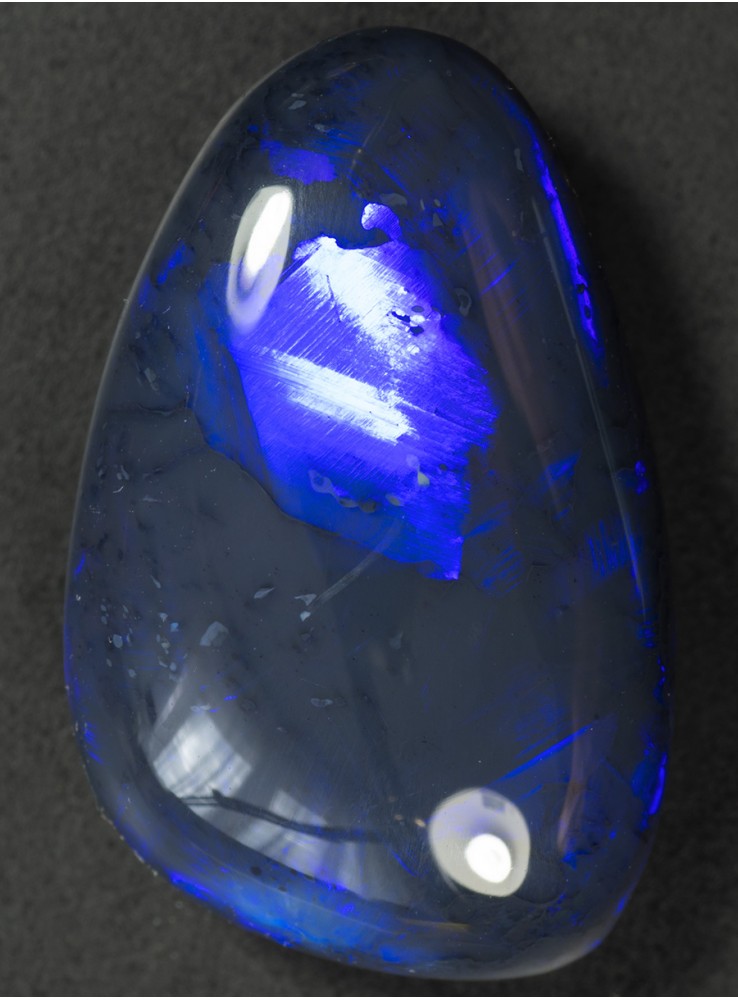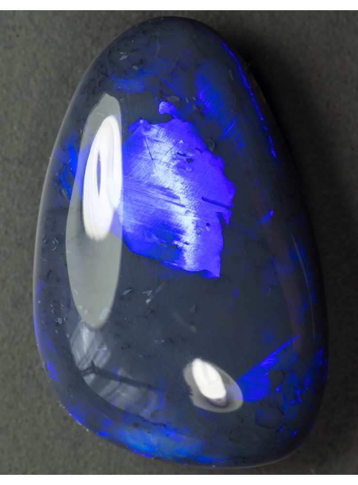 Přírodní drahý opál z Austrálie (Lightning Ridge). Nádherný černý opál s krásně probleskující modrou až fialovou barvou. 19,9x12,8x5,2mm, 8,51ct